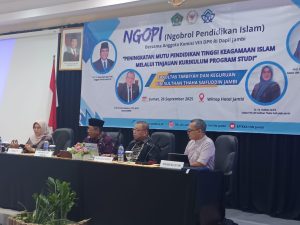 JAMBI – Dalam upaya meningkatkan mutu pendidikan tinggi keagamaan Islam, dosen dari Program Studi Pendidikan Guru Madrasah Ibtidaiyah (PGMI) Fakultas Tarbiyah dan Keguruan UIN Sulthan Thaha Saifuddin Jambi mengikuti kegiatan NGOPI (Ngobrol Pendidikan Islam). Acara ini diselenggarakan bersama anggota Komisi VIII DPR RI Dapil Jambi pada hari Jum’at, 26 September 2025, di Wiltop Hotel Jambi.